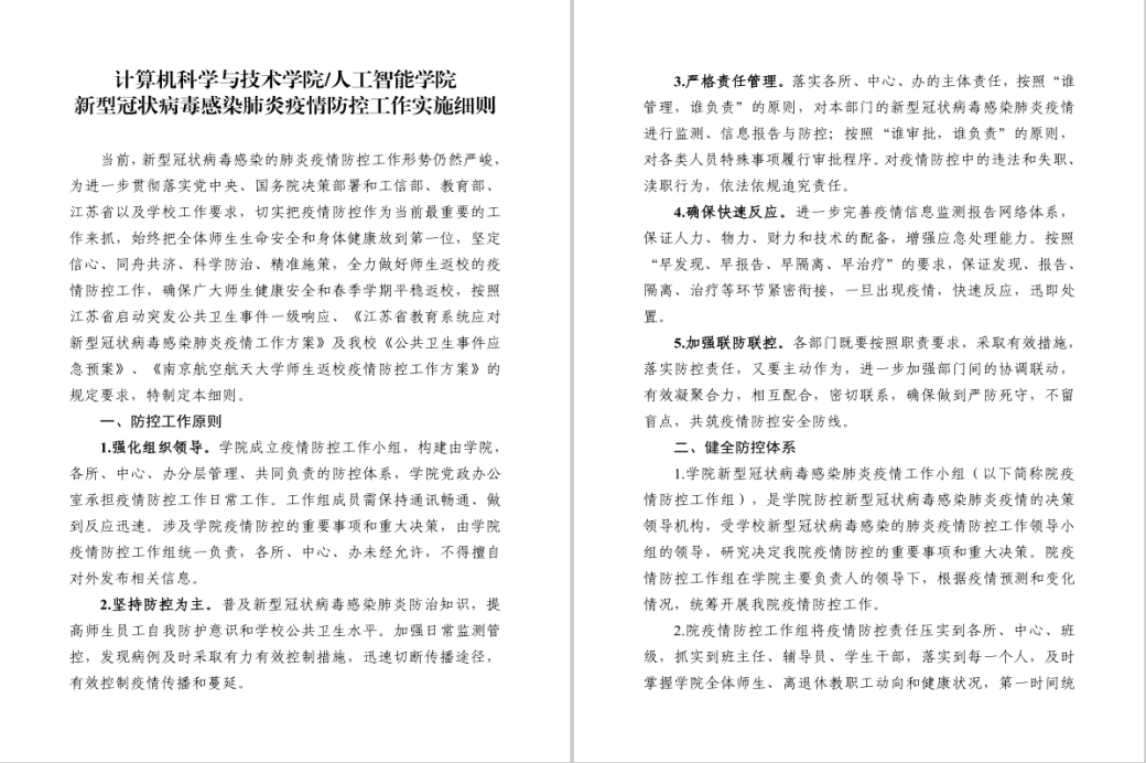 学院发布《新型冠状病毒感染肺炎疫情防控工作实施细则》