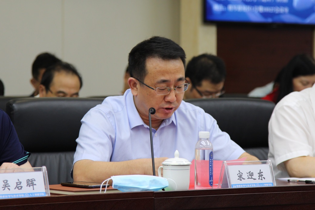 首先,副校长宋迎东代表学校向与会来宾致辞,感谢各位专家的莅临指导。他表示,人工智能经过几十年的发展,已经成为促进社会经济各个领域发展的核心动力,是引领未来的战略性技术。我校人工智能学院和研究院经过两年来的发展,在师资队伍建设、人才培养、科学研究等方面取得了一定进展。但同时也面临着诸多挑战,特别是面向国防战略需求的交叉创新人才培养和科学研究需要持续深入,亟需各位专家给予宝贵的帮助和悉心的指导。学校一直以来高度重视人工智能的发展,以此研讨会为契机,虚心接受专家提出的宝贵意见建议,持续加强投入,努力推动人工智能学院和研究院的建设发展更上一层楼!
