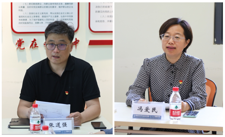 活动伊始,院党委委员、副院长张道强领学了习近平总书记在清华大学考察以及在两院院士大会中国科协十大上的重要讲话精神,着重学习了我国全面建设社会主义现代化国家新征程对高等教育和卓越人才的迫切需求、一流大学群体对国家高等教育体系的支撑意义与建设方针,重点阐述了广大青年教师所肩负的职责与使命,强调在新形势下必须要毫不动摇坚持科技创新理念与发展战略。习近平总书记的重要讲话在与会同志中引发了热烈反响,支部书记冯爱民、支委刘学军、张立言、蔡昕烨和朱旗率先结合工作实际与实践经验,就计算机与人工智能学科未来发展、多学科交叉研究面临的客观条件约束、学校人才评价机制以及科研人员服务保障措施等问题发表了看法;计算机专业主任袁伟伟分享了跨专业、跨学科研究的亲身经历与深刻体会;支部新成员李丕绩、戚世乐对加快推进新进教师教学与科研工作提出了建设性意见。