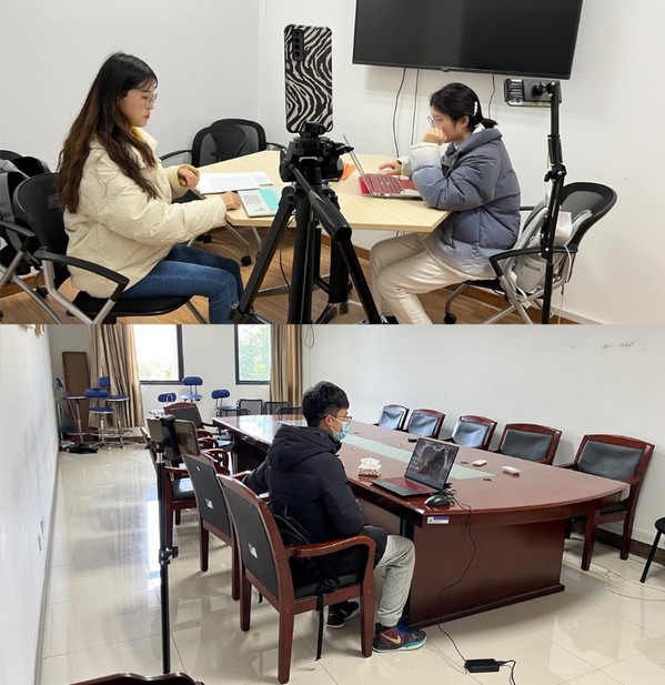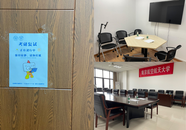 在学校封闭管理的条件下,针对学生复试场地需求,学院为复试学生搭建标准化独立空间,配有桌椅、考试用纸、电源、有线网络以及无线网络覆盖,并为学生准备了笔记本电脑、饮用水等物资方便学生使用。此外,针对不同面试学校、不同时段的空间需求,学院挖掘一切可利用的空间,制定详细的线上预约方案,解决学生急需的现实需求。