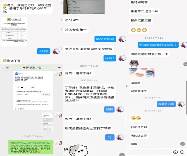 学院全员发动,线上线下结合,从应答专业问题、调整心理状态、选择调剂学校、复试礼仪等多个方面对研究生复试进行全方面指导。鼓励学生勇敢克服疫情带来的各种困难与挑战,积极迎接复试。同时让学生认识到,考研路途中,学院始终会做到真心相伴、一路同行,在做好“守护者”的同时,也做好“贴心人”。